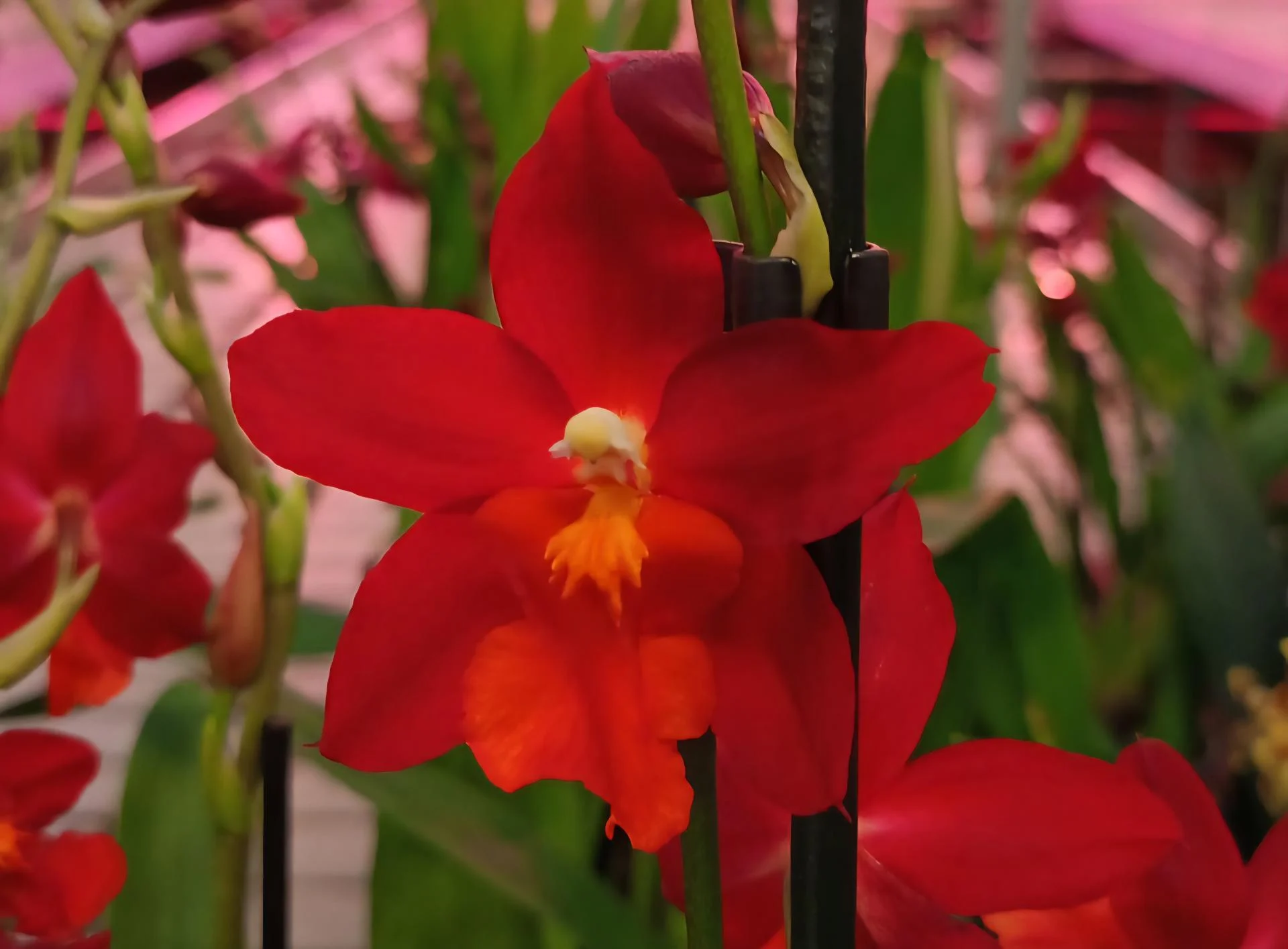 Cambria avec de jolies petites fleurs rouges et orange en forme d'étoile